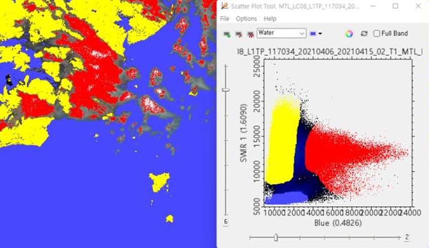 2D Scatter Plot은 ENVI에서 분광 차원과 공간 차원을 연결결하는 가장 기본적인 도구입니다.